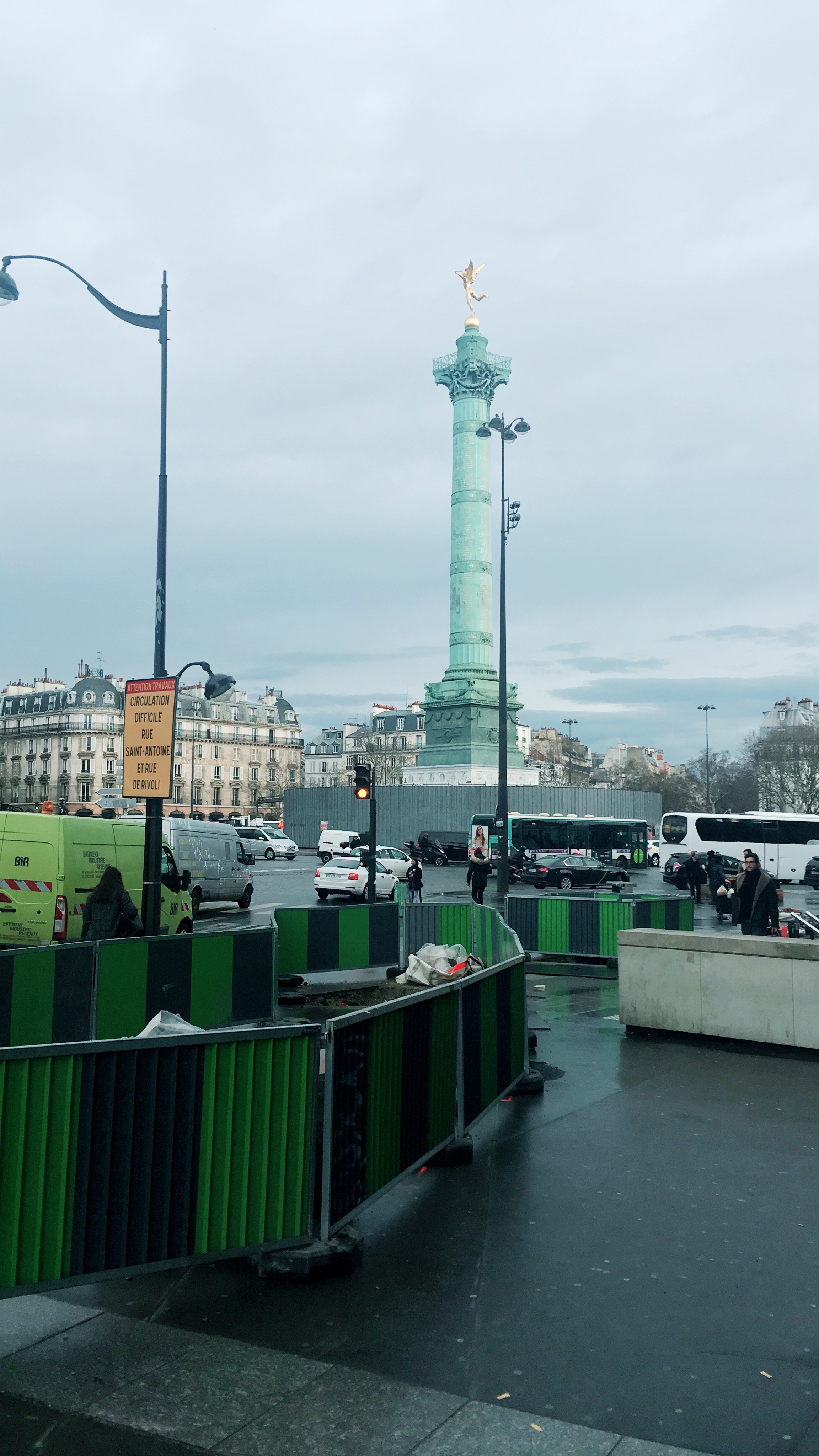 當天剛好遇到廣場旁的路面整修,所以有許多圍欄與路面坑洞。不過,能親眼看到巴士底廣場的樣貌,非常興奮啊!!!這是我在法國看到的第一個「從書本走出的歷史紀念建築」呢!