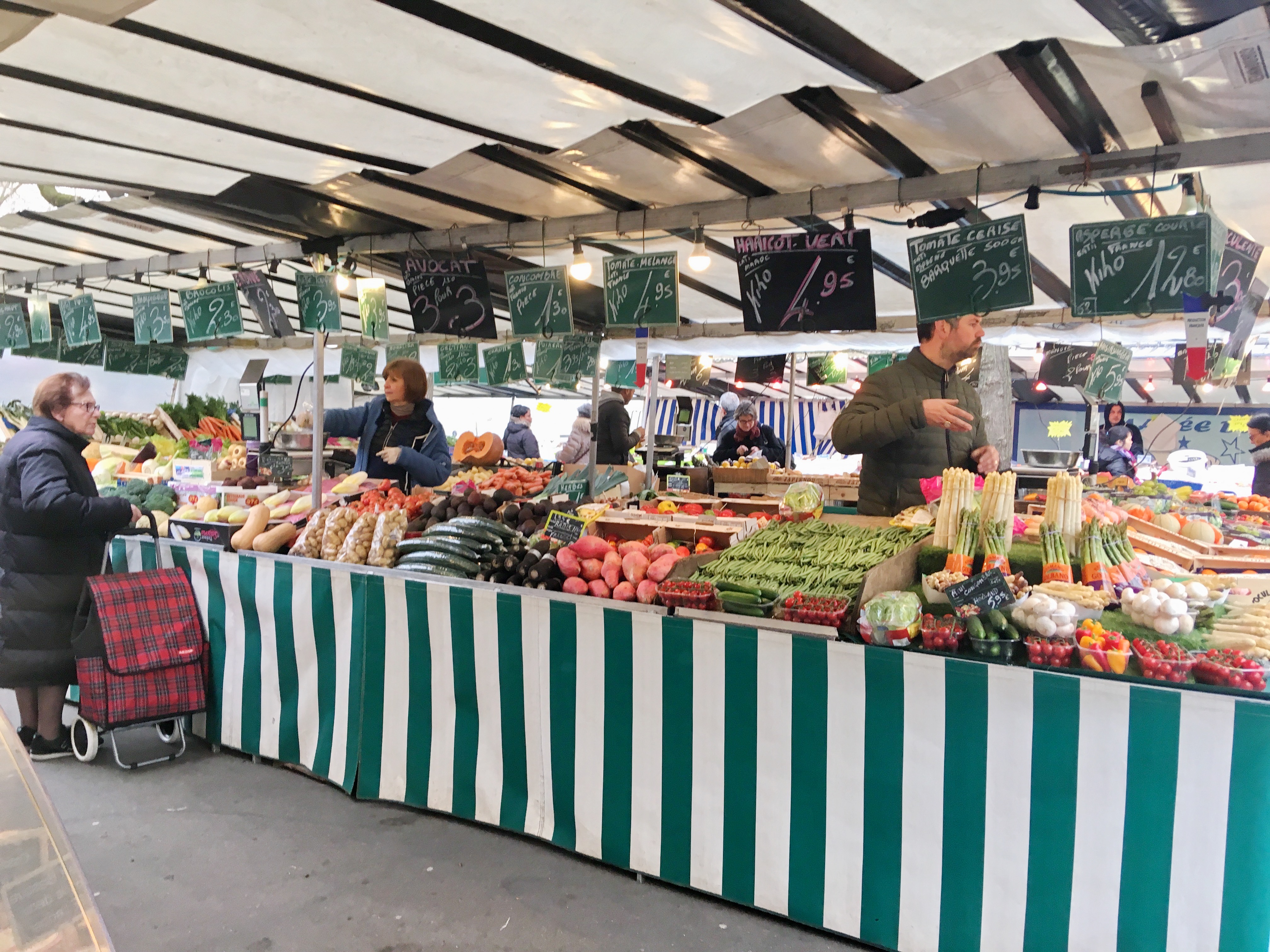 習慣早起的沙發主Roland,邀請我陪同他去附近的當地市場採買一天的食材,而那個市場正是位於法國巴黎瑪黑區有名的Marché Bastille(巴士底市集)。