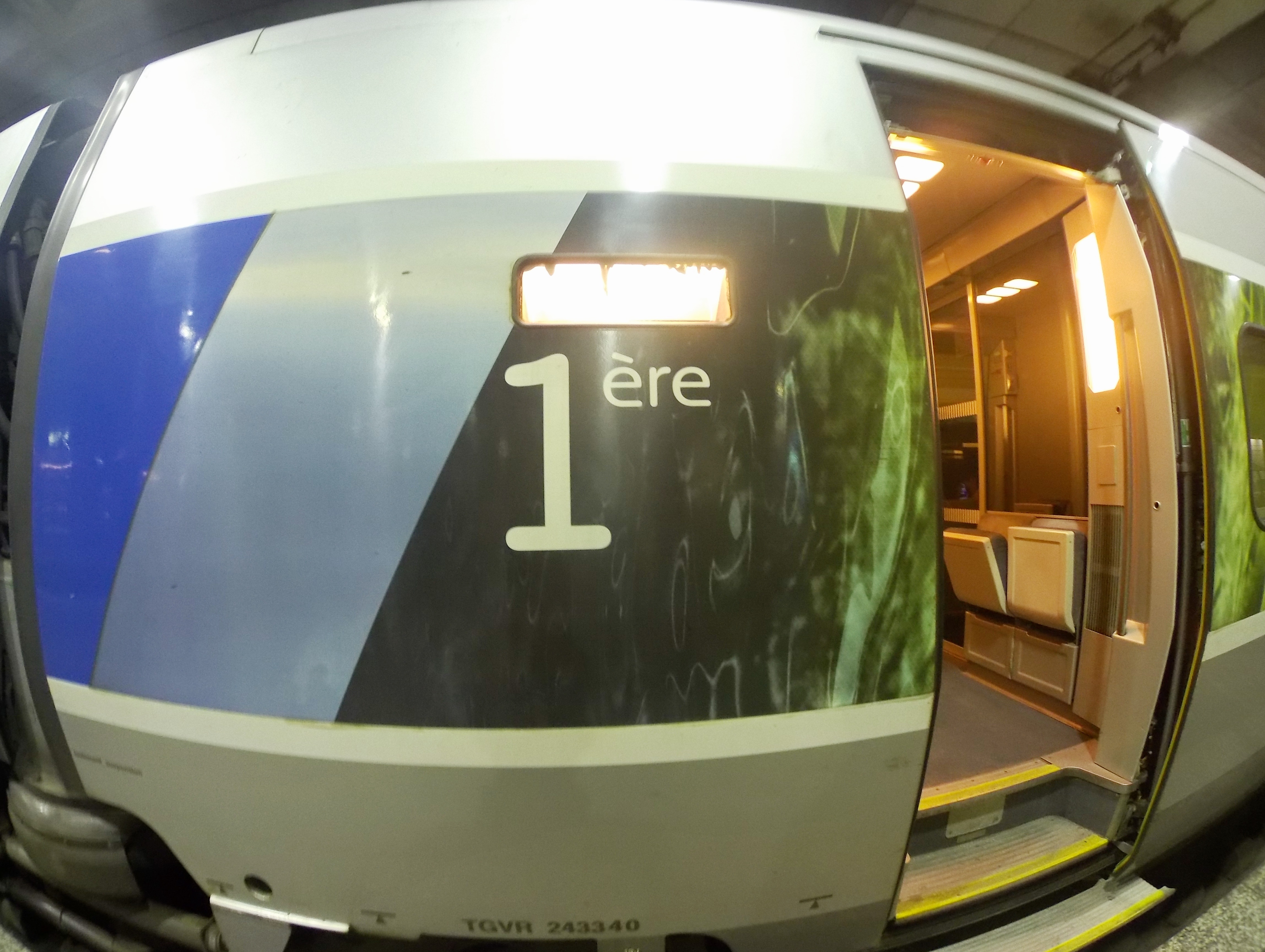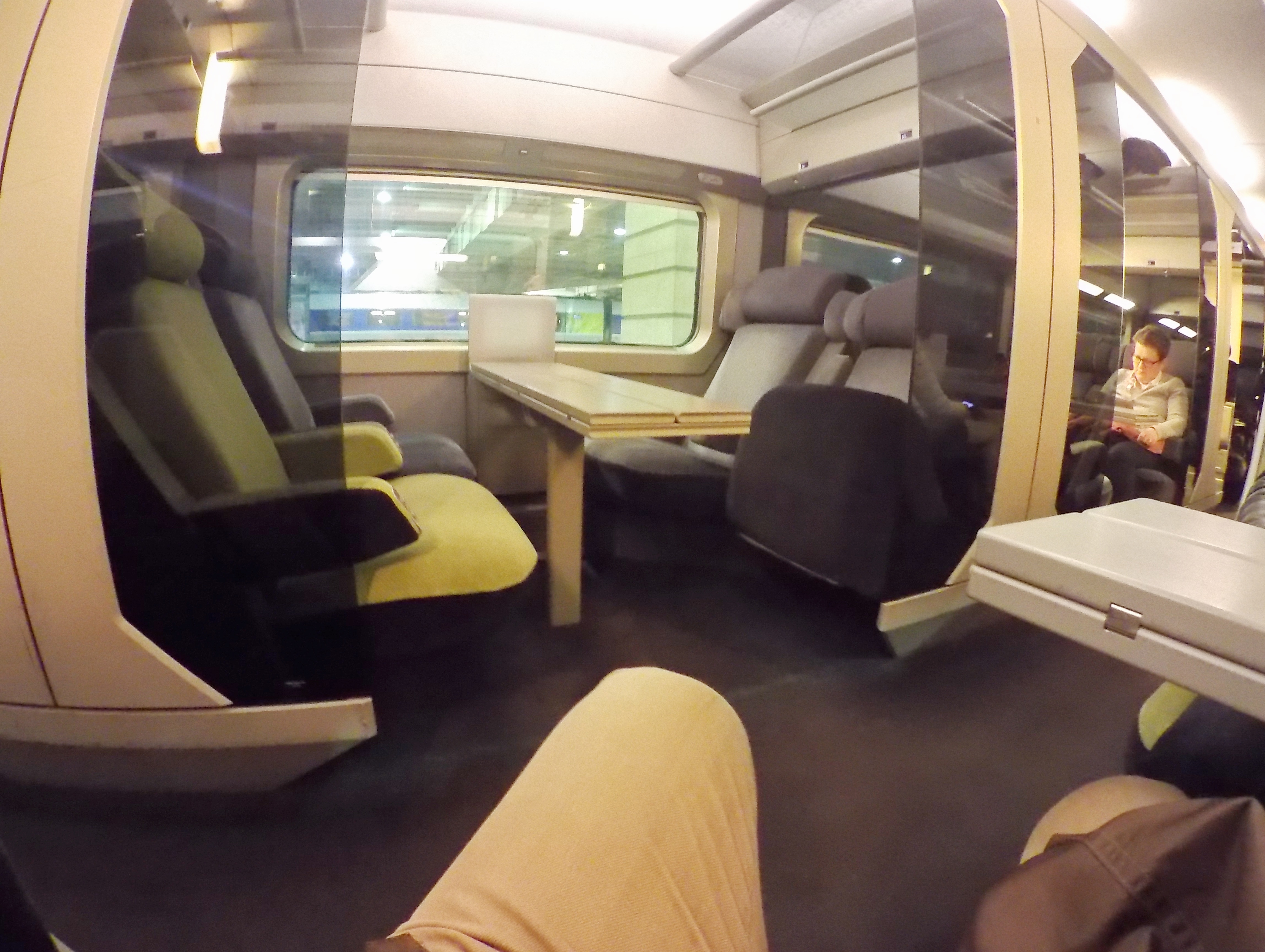 法國TGV的頭等車廂(1 st. Class )只有三排,比普通車廂少一排,因此座位空間更為舒適,椅子坐起來也比較舒服。