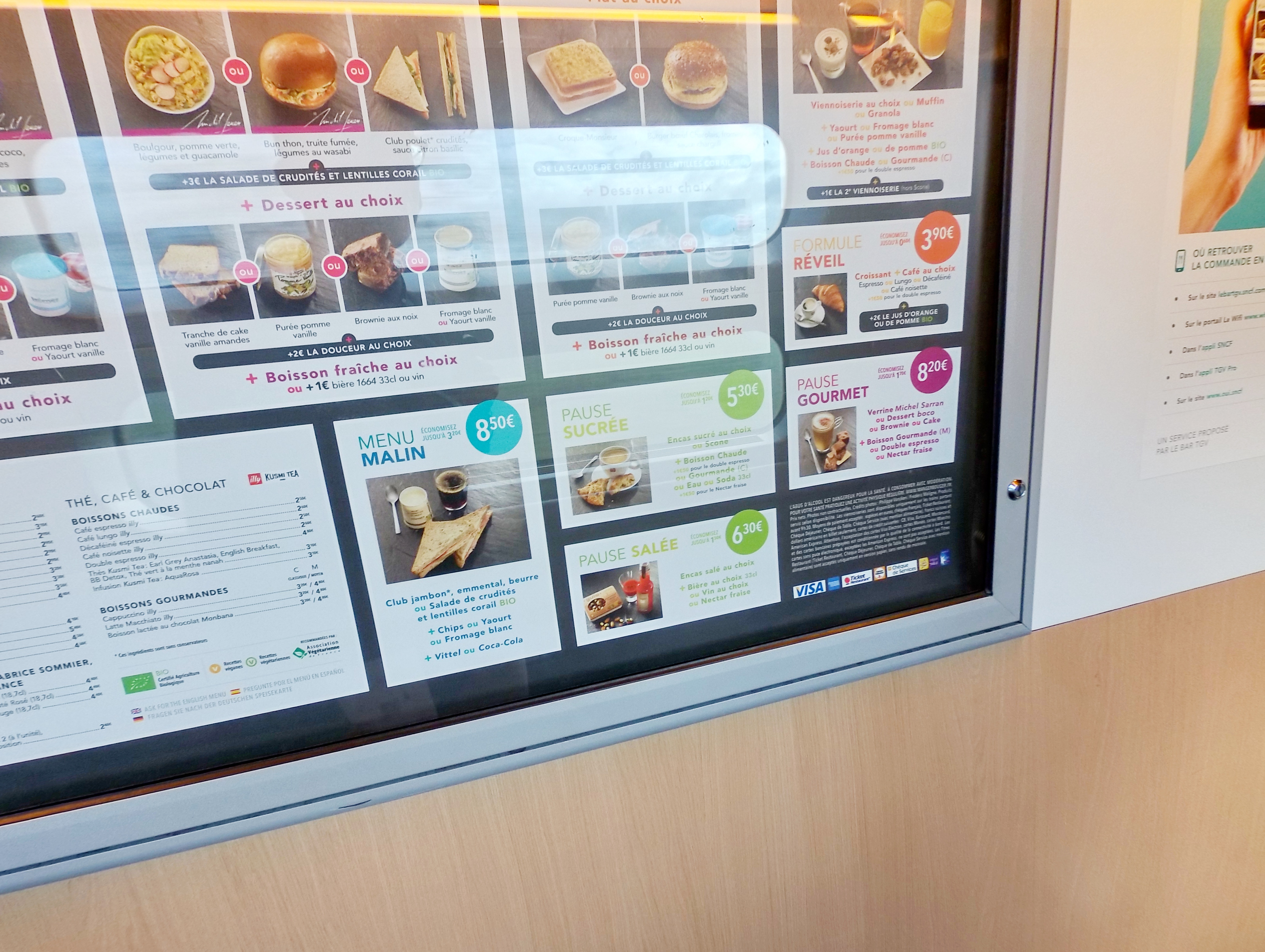 沙拉、吐司、可頌、三明治、咖啡、濃湯、蛋糕、優格,法國人常吃的食物,在車廂上都有!