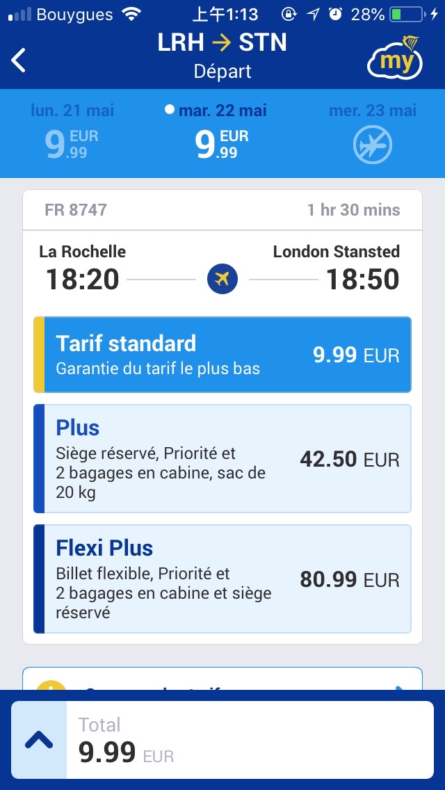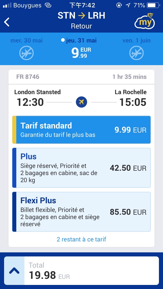 使用APP來查看機票非常方便呢!可以在課餘時間、等公車時,都能隨時隨地刷一下更新看看有沒有這個優惠的價格。而且,飛行時間只有90分鐘,比我搭高鐵到巴黎的時間還短😂