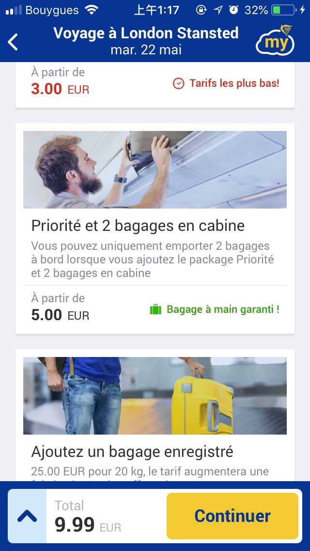 加個行李也只是5歐的事,托運行李則要25歐(咦?居然比機票貴😂)