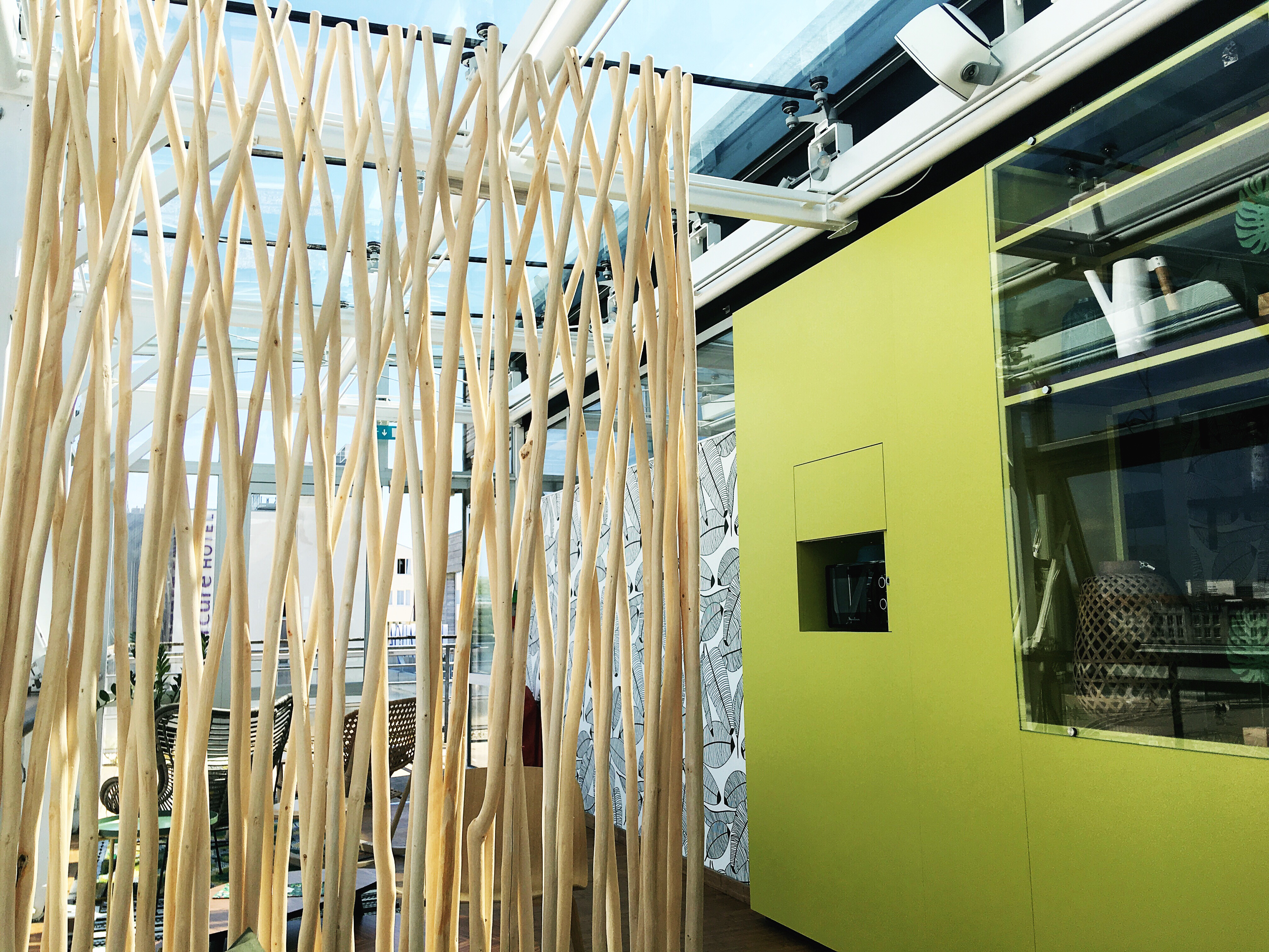 一到二樓,開闊的視野映入眼簾,能同時飽覽水族館內的熱帶植物與窗外蔚藍的港口景色。