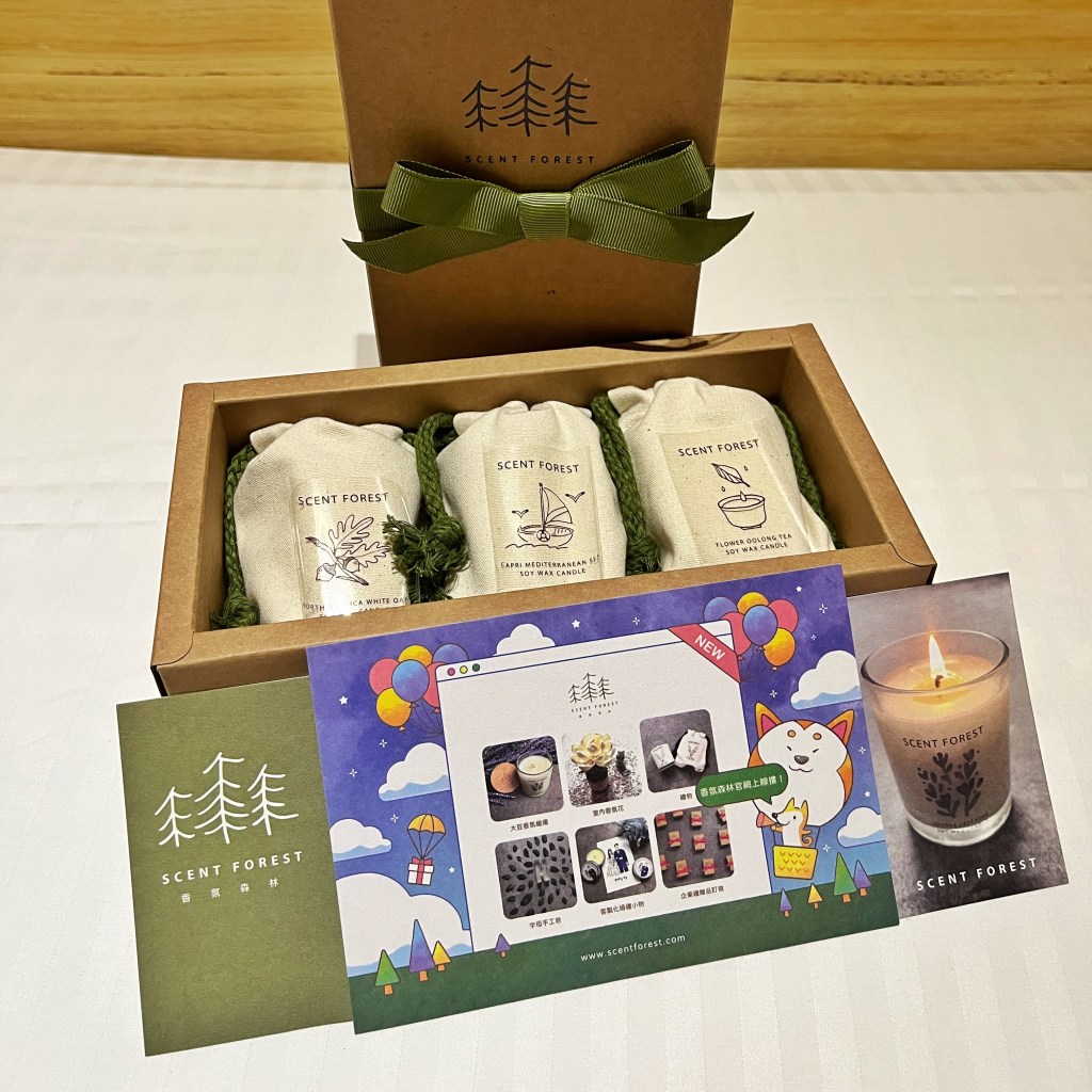 香氛森林他們家的蠟燭,不僅有可愛的插畫設計,以及精緻的棉布袋,更有簡約優雅的包裝,可以滿足自用與送禮的需求。
