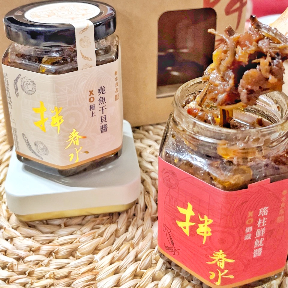 隨便一撈就是滿到連湯匙都裝不下的料,看得見整隻魚乾,完整的干貝顆粒、魷魚,超級真材實料的啦!可以拌麵、拌飯、炒菜、搭水餃,發揮創意超百搭。而且一個組合有兩種口味,「極上堯魚干貝」我覺得口味上偏甜一些,微微的辣很開胃,不敢吃太辣的人應該會喜歡。