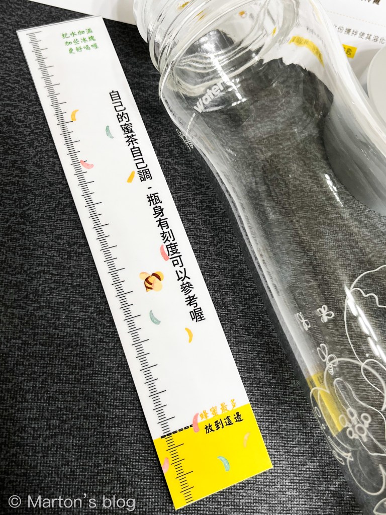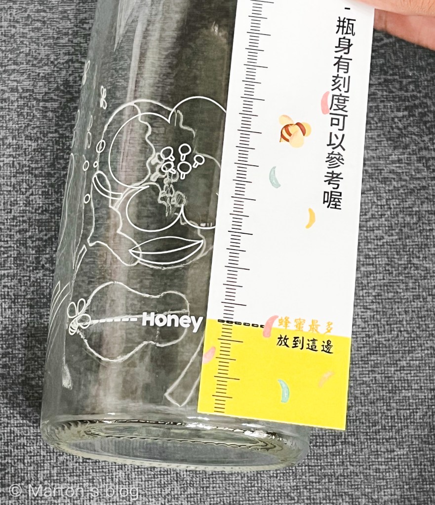 不僅有附上一把量尺,直接告訴你「蜂蜜最多放到這邊」的位置,更貼心地在瓶身上也有標示,真的太可愛了啦~