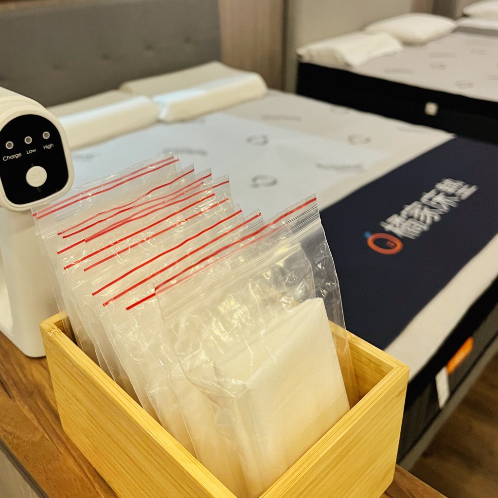 現場還有提供乾淨的保護套,可以在試躺的時候做鋪墊使用,既衛生又安心。