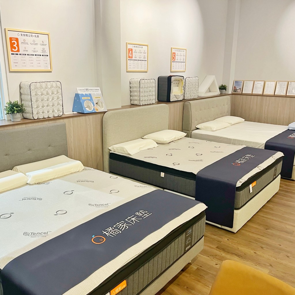 值得一提的是,橘家床墊不僅有販售床墊與乳膠墊,其實連床包、涼感被、保潔墊、床架等,凡是跟寢具相關的各種商品,在這裡都能一條龍地一次選擇到好唷!