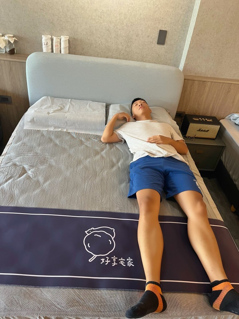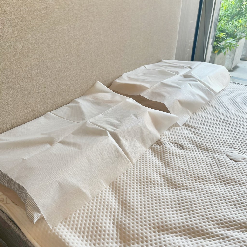 試躺前,貼心的門市人員幫我們鋪上了乾淨的枕巾,對於衛生的注重,這點蠻加分的。