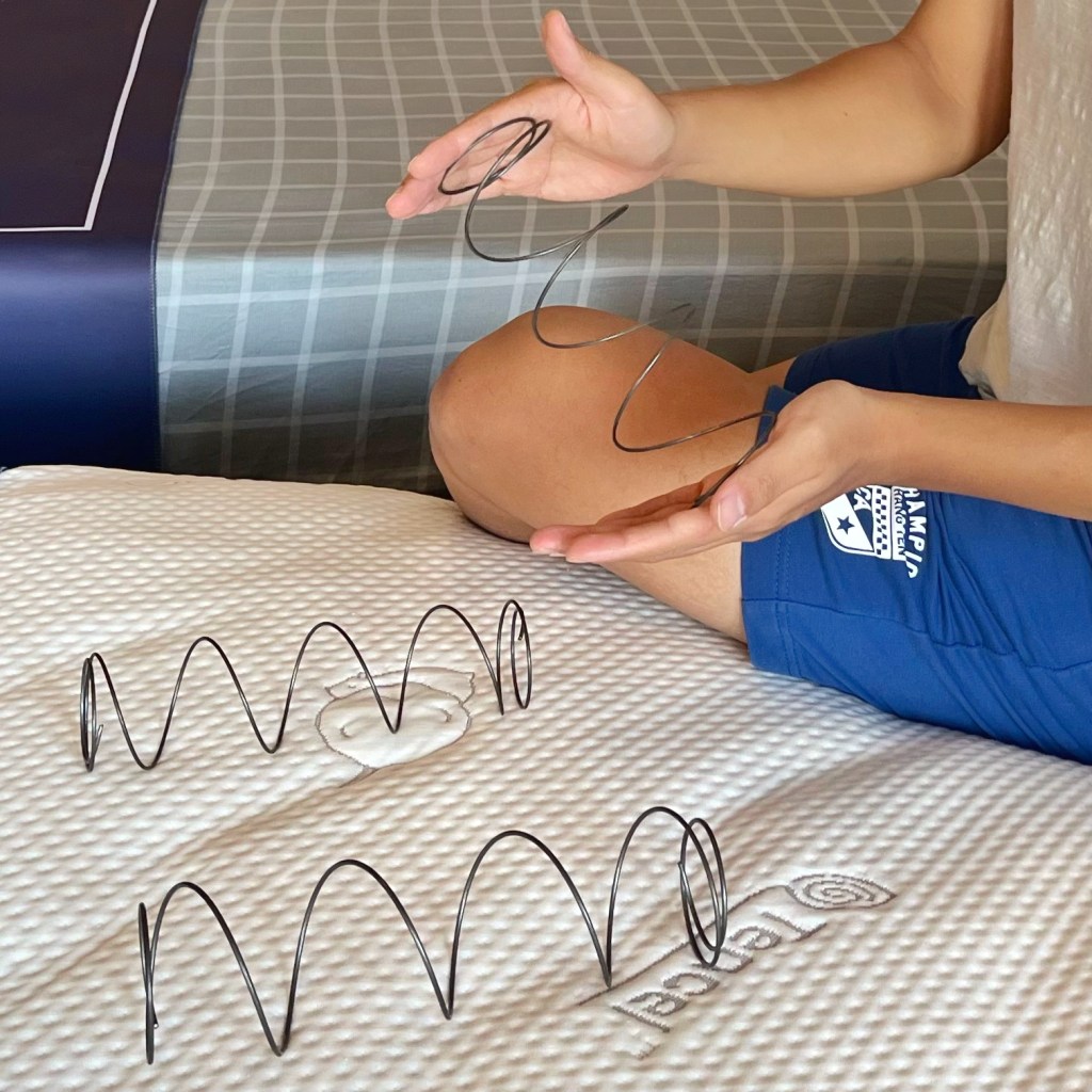 此外,還能實際看到與觸摸到內部材質,可以用手壓壓看,感受不同彈簧帶來的軟硬度,超酷的!