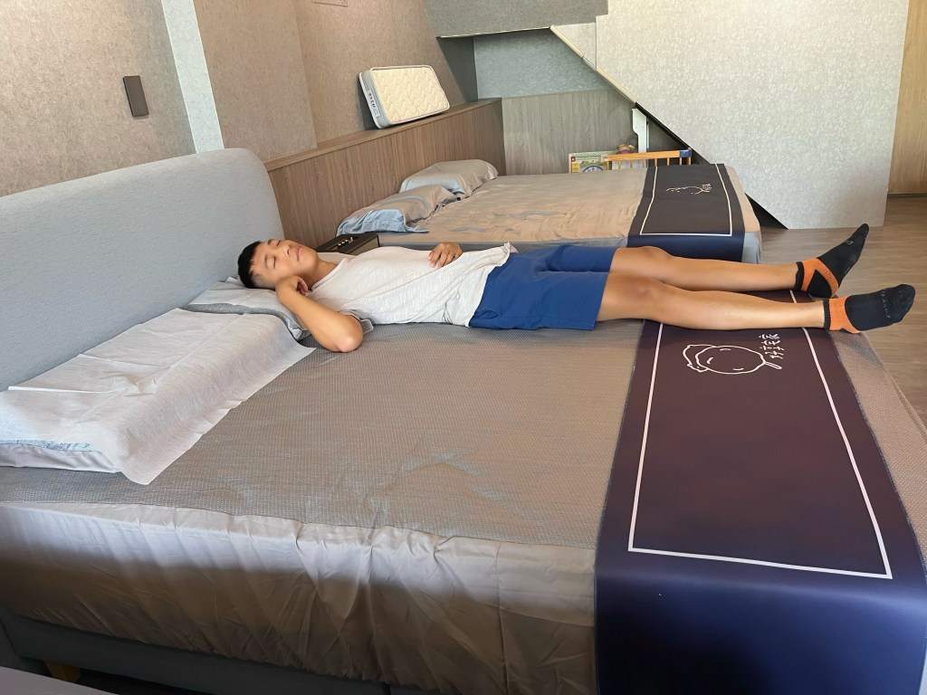門市人員提到,因為床墊是需要長時間陪伴著我們的身體的,所以儘管盡情的試躺,尋找自己習慣的舒適感,就算一張床躺個十幾分鐘也沒關係。