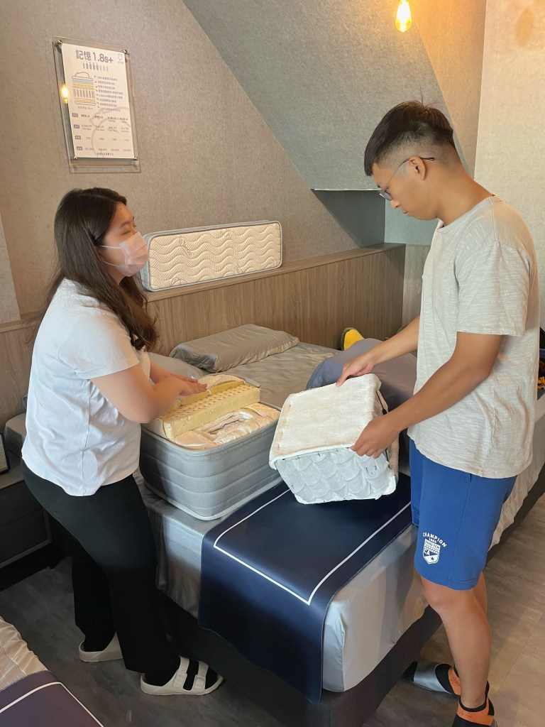 在經過門市人員詳細又清楚的介紹後,我十分推薦一定要親自來現場體驗試躺!因為在現場,不僅能實際讓身體感受床墊的軟硬度,更能在門市人員專業的介紹下,收穫許多有關於床墊材質優劣的小知識。