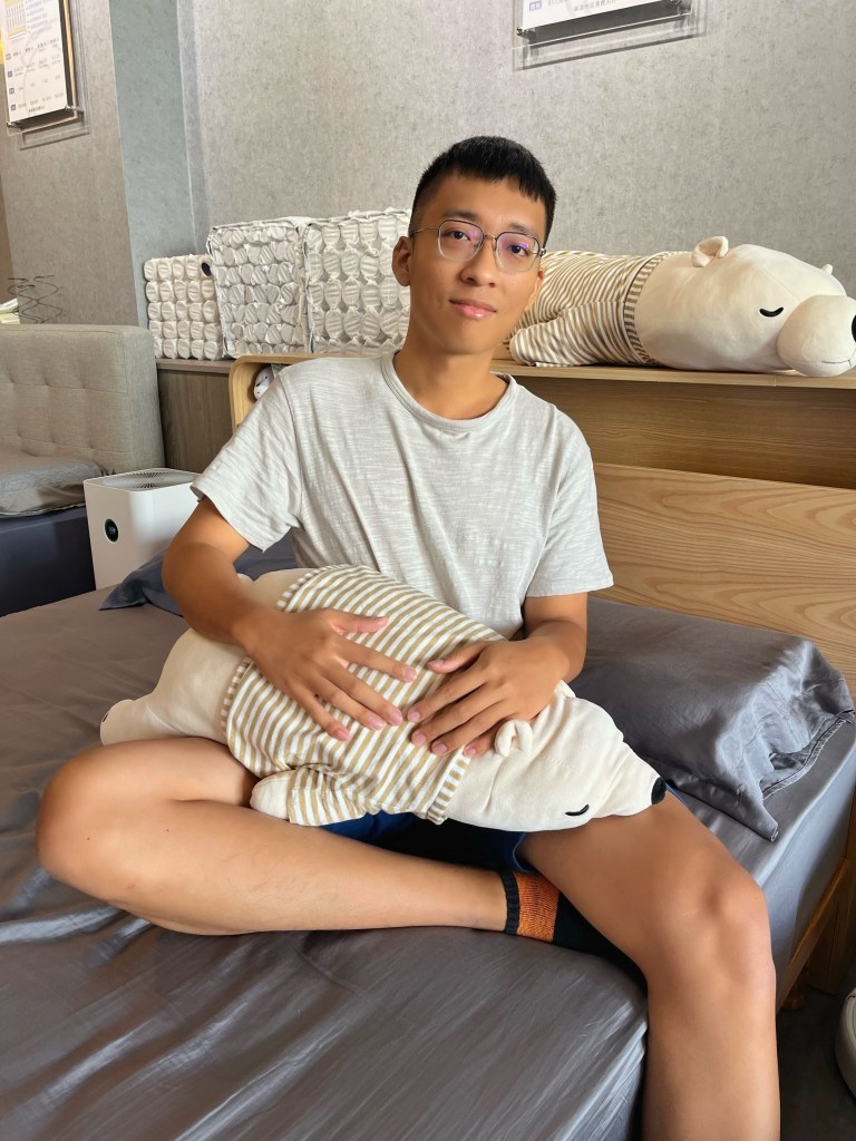 於是我就非常認真的模擬自己實際睡覺的樣子,換了許多不同的睡姿來試躺,還躺到打哈欠XD