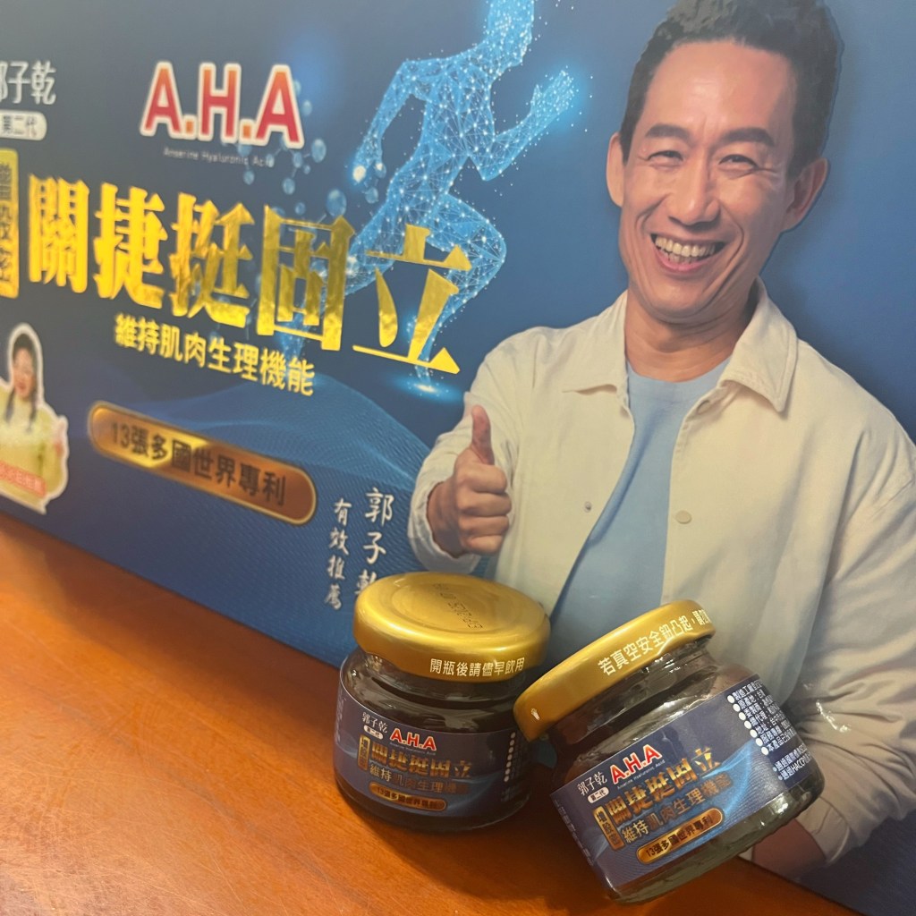 「亞洲健康王 A.H.A增股密 關捷挺固立,是使用了13張國際級專利原料配方,以最高規格的技術來研製,提供身體『骨頭、關節、肌肉』的關鍵營養素。」