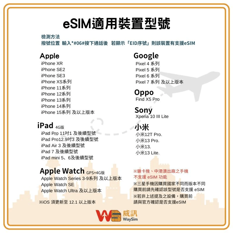 在下單前,先確認過自己的手機是否有支援eSIM: