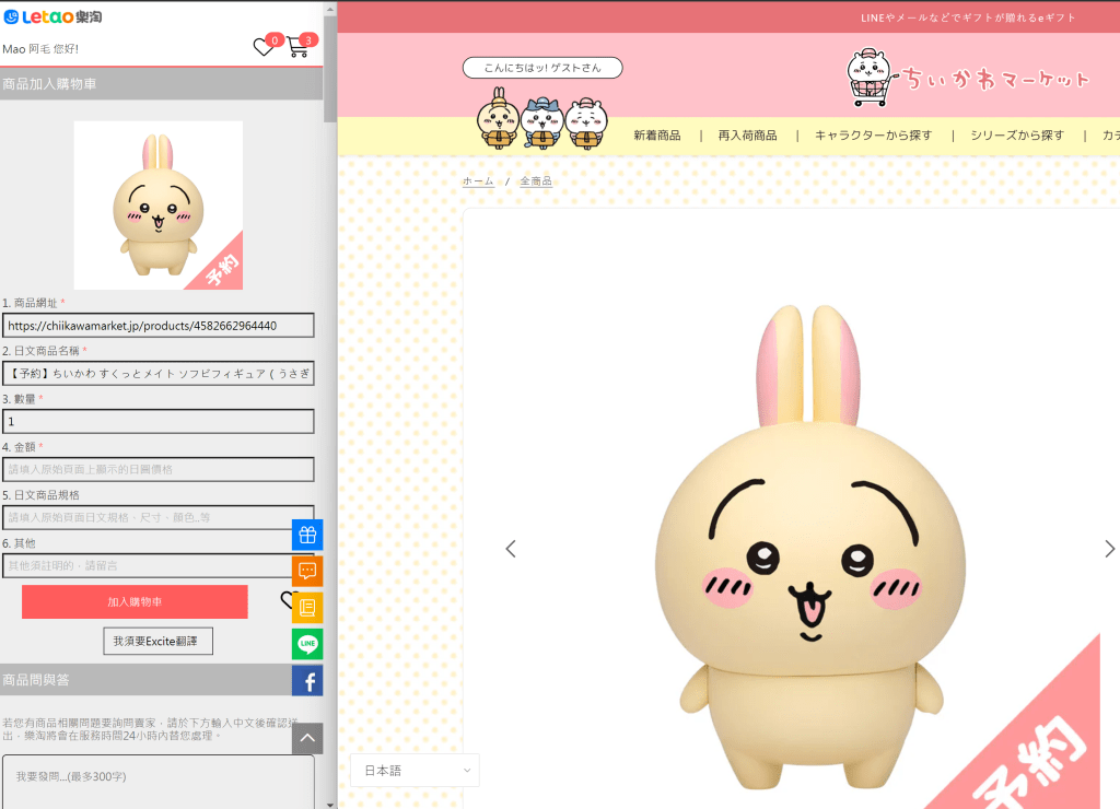 可以在台灣就買到吉伊卡哇日本原廠的正版商品,真的好開心!透過【樂淘Letao】日本代標代購,簡單又輕鬆~