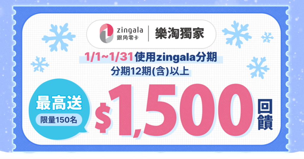 優惠4:樂淘 X zingala銀角零卡獨家!最高享$1500回饋!