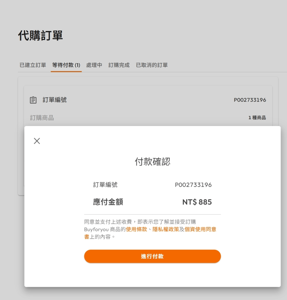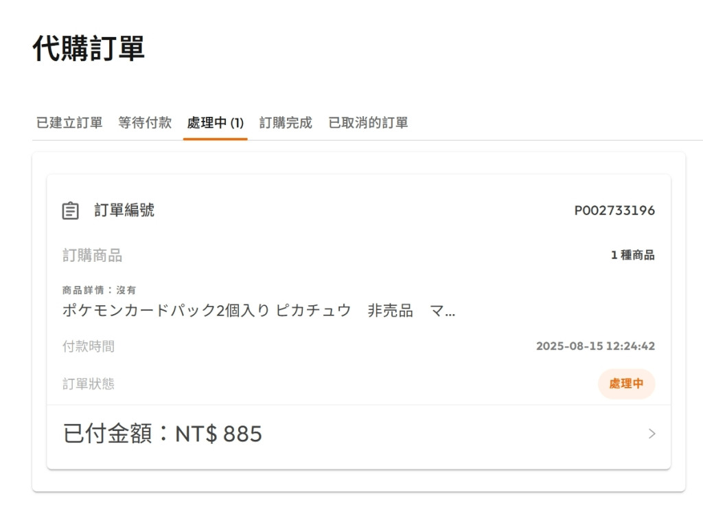 或是也可以到「代購訂單」的頁面來查看,目前所有訂單的情況,讓你一目了然