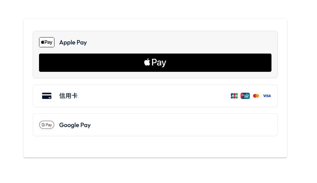 在Buy&Ship付款很方便,除了基本的信用卡之外,還有Apple Pay與Google Pay等行動支付方式,讓付款的步驟更簡單了