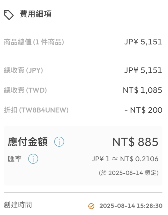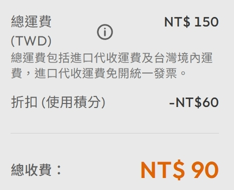 費用會是以當天的即期匯率來計算,搭配上Buy&Ship折扣碼的優惠,整體非常實惠