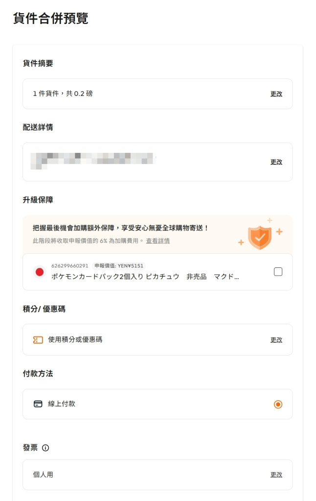 在Buy&Ship的整個購買流程,對我這個新手來說,非常直覺好操作,相信你們如果第一次使用,也會覺得很簡單。