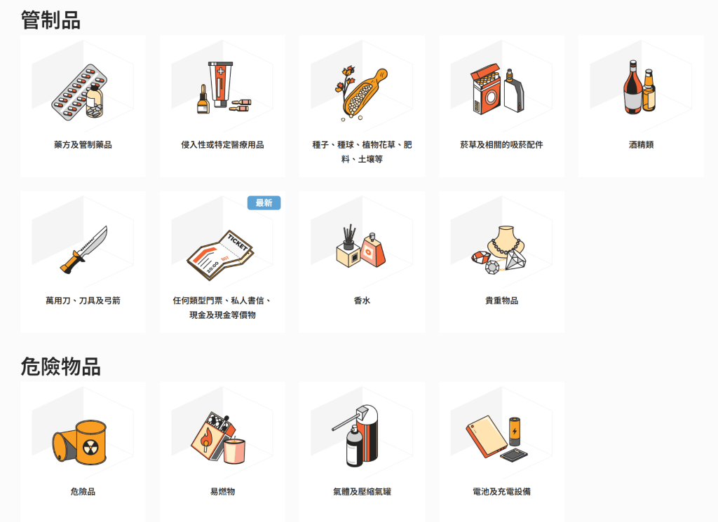 電池、液體、酒精飲品、部分食品與化妝品,購物前要先查禁運清單: