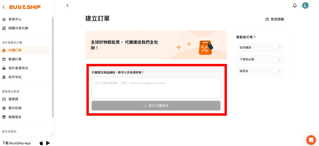 Buy&Ship 是一家國際物流公司,除了提供跨境集運服務之外,也推出了國際代購服務。用戶只需要提交商品連結,就能輕鬆代購來自 日本、美國、加拿大、韓國、英國、香港 等地的商品。