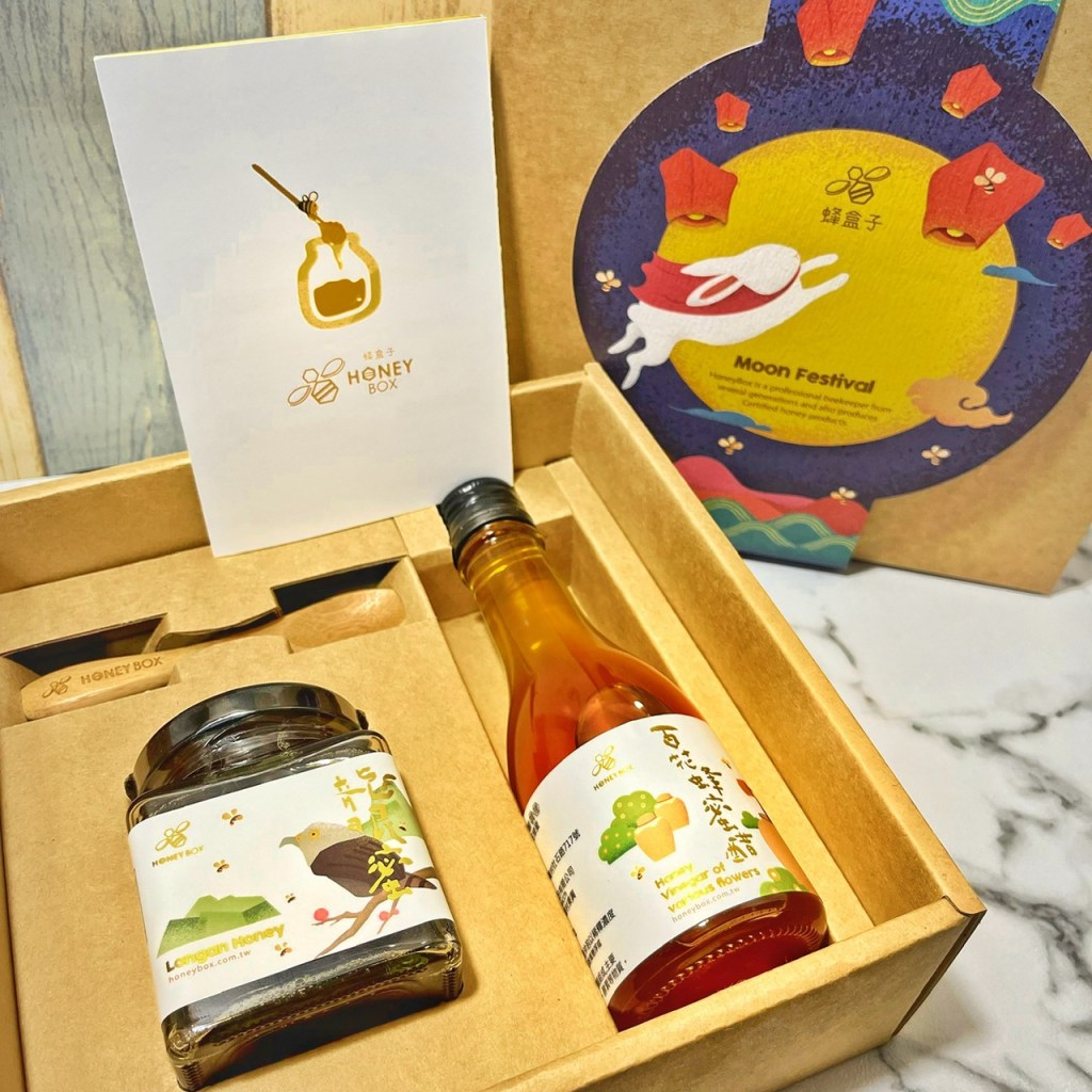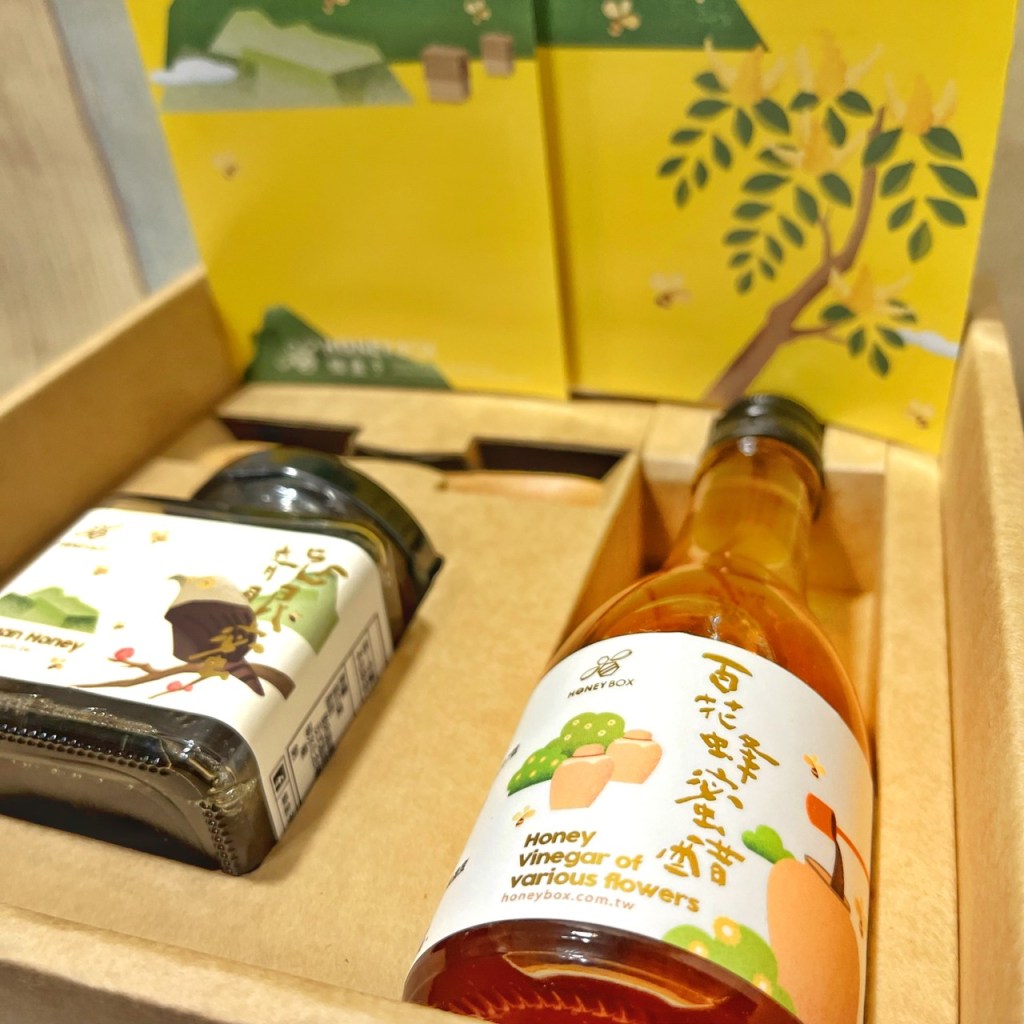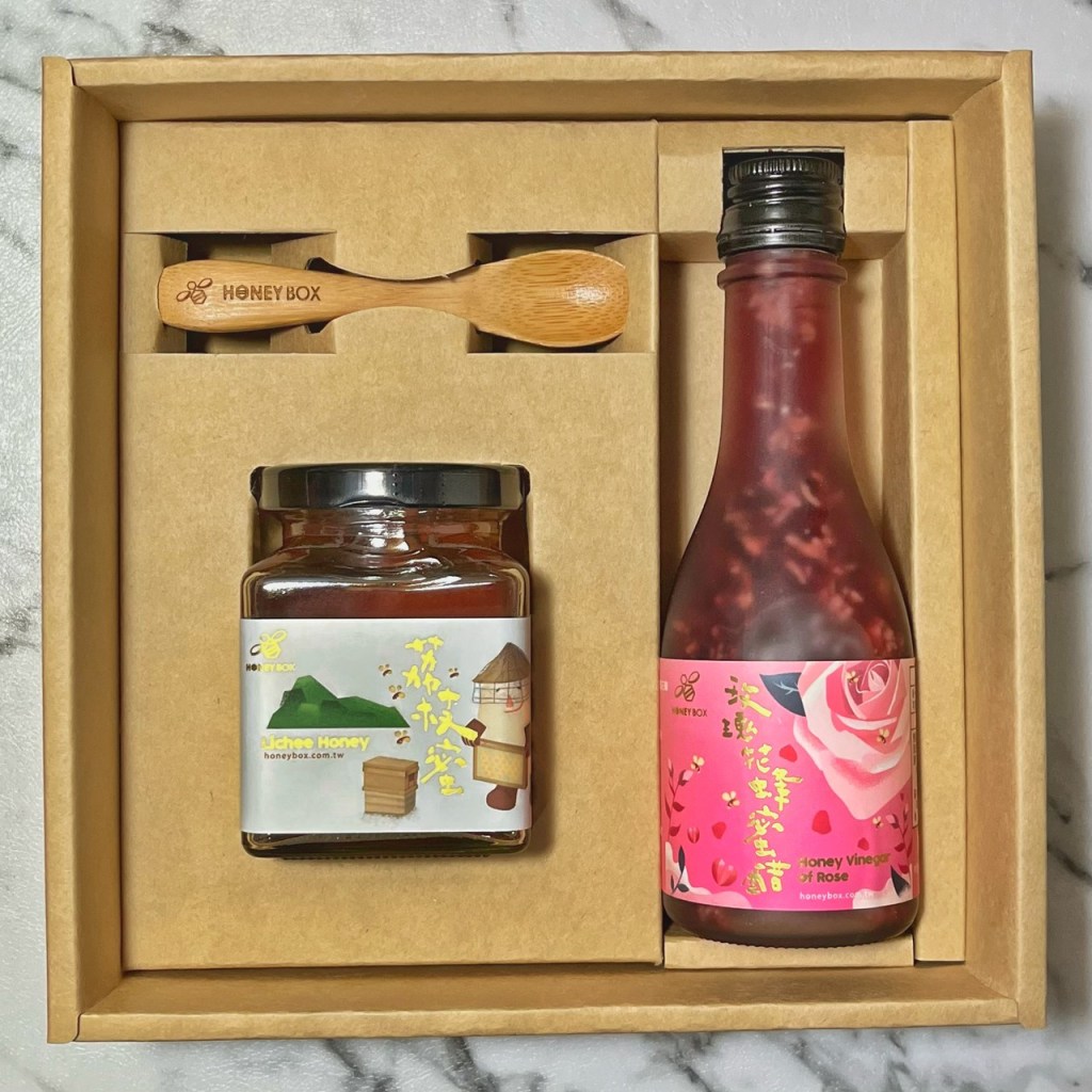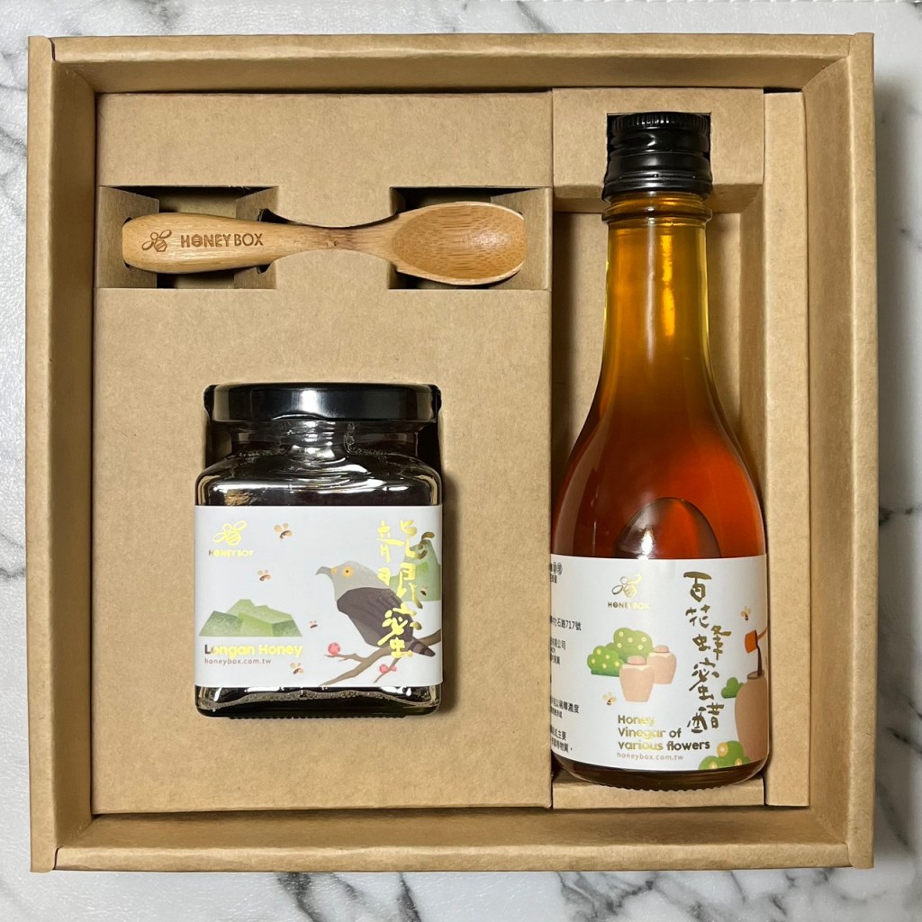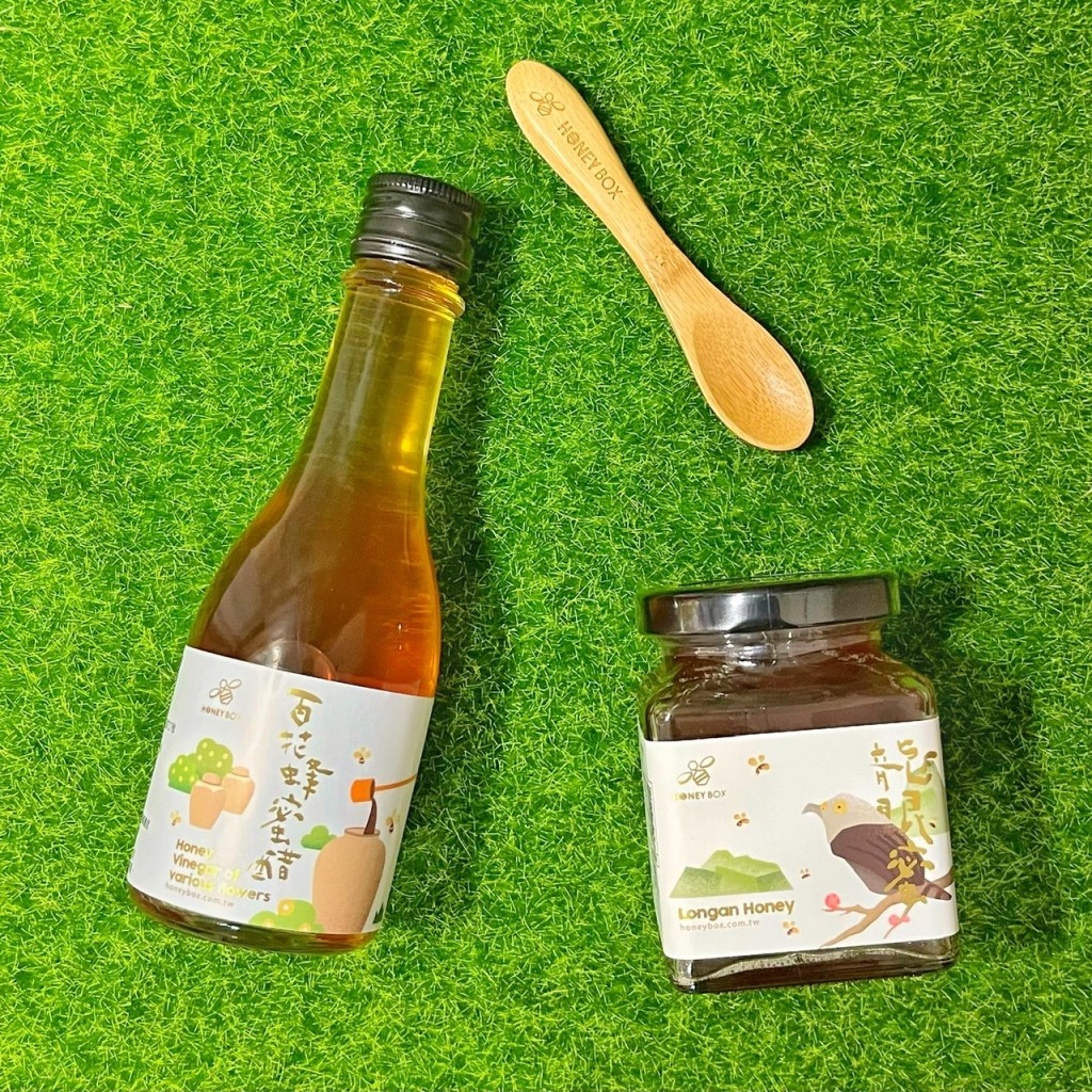 裡面同樣有可愛的竹湯匙,而蜂蜜與醋則分別是 產銷履歷龍眼蜜240g + 百花蜂蜜醋180ml